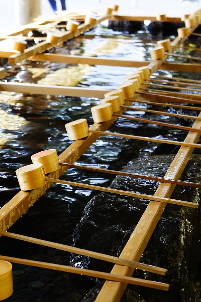 手水舎で手と口を洗って禊ぎをします。