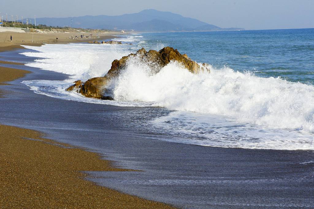 灯台から太平洋岸に面して日出の石門までの約1km続く砂浜「恋路ヶ浜」。