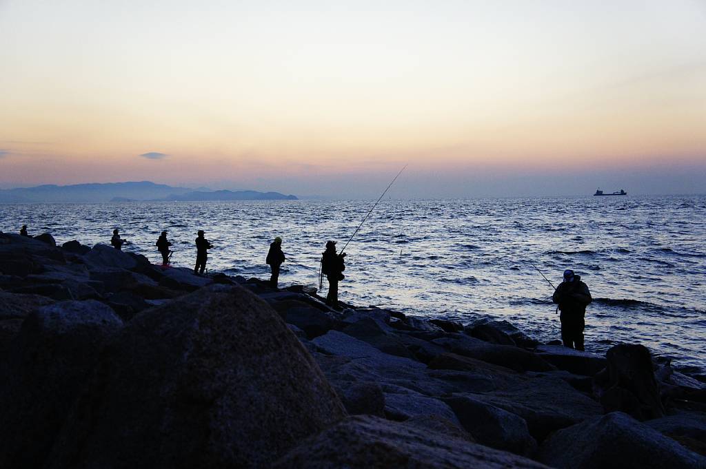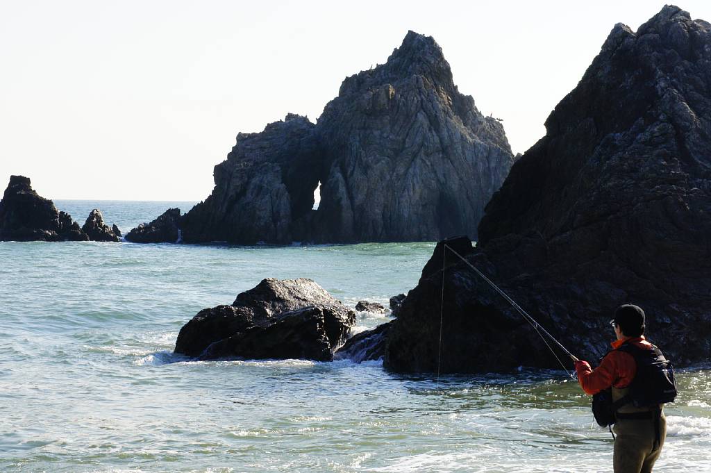 遊歩道で道の駅に戻る。海岸では多くの釣り人たちが。
