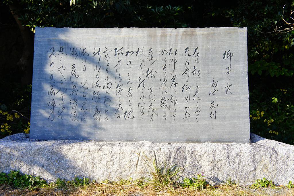伊良湖岬から続く恋路ヶ浜東の端にある島崎藤村の「椰子の実」歌碑。