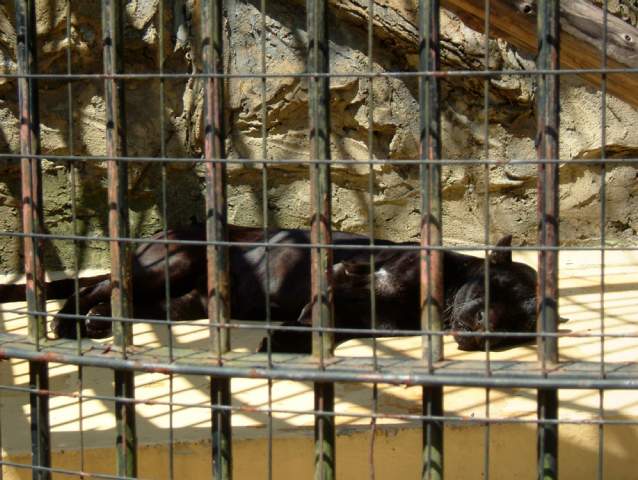 トラとライオンの檻では餌やりをやっていた。